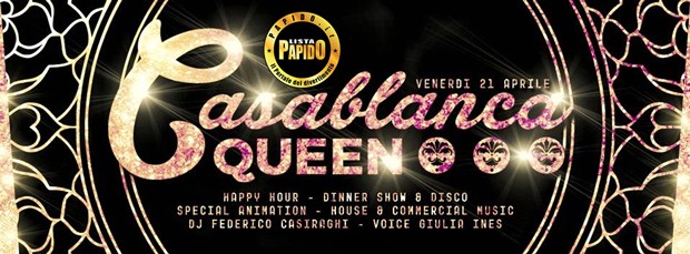 Venerdi 21 Aprile 2017 Sio Cafe presenta Casablanca Queen super cena/aperitivo cabaret e party con la strepitosa animazione del duo "en travesti" Madame Twirly e La Caloggera che vi faranno divertire poi per tutta la notte