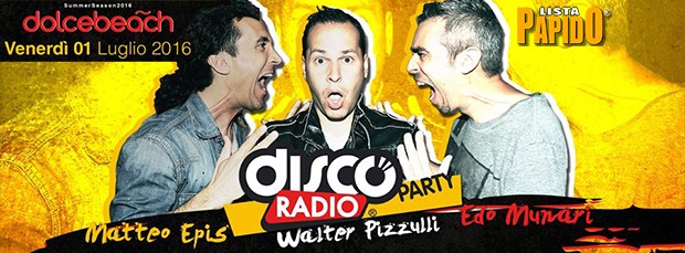 ✔ Venerdi 1 Luglio 2016 un altra notte targata Dolce Beach presenta: DISCORADIO PARTY