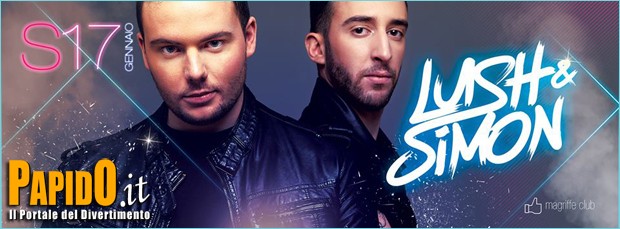 Sabato 17 Gennaio proporrà ai suoi clienti un BIG EVENT da non perdere.... Dopo i loro Successi internazionali di grande successo in tutte le classifiche, arrivano Lush & Simon i top producers di fama internazionale....Un Evento da NON Perdere consigliato da PapidO.it
