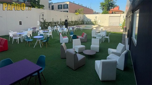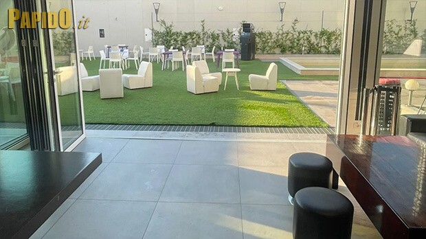 La location dispone di salottini privati, una postazione bar, una piscina e una cucina attrezzata per eventi, supportata da un’area guardaroba e 5 bagni. È ideale per feste private, meeting, congressi, cene aziendali ed eventi esclusivi, con i suoi 300 mq di spazi interni e 340 mq di spazi esterni.