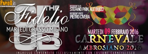 Fidelio il Carnevale Ambrosiano Il Martedi Grasso a Milano è targato Fidelio... Martedi 9 Febbraio 2016 al The Club si Festeggia il Carnevale Ambrosiano e per l'occasione la serata sarà artisticamente strutturata così: Resident Dj ► Stefano Pain & Ale Bucci Guest Voice ► Pietro Civera Dance Show ► EWS Performers One Man Show ► Pippo Tendenza L'ingresso è consentito ESCLUSIVAMENTE con COSTUME CARNEVALESCO La One night FIDELIO – Martedì Notte Milano - nasce nel 1998 da un'idea dell'indimenticato Poldo Longhi e Gabriele Piemonti. Il team creativo prende spunto dalla rappresentazione visiva che il grande cineasta Stanley Kubrick esprime nel film Eyes Wide Shut e dal pathos musicale dell’opera teatrale Fidelio del Maestro Ludwing Van Beethoven. Ambedue le opere hanno contribuito a stimolare i soci fondatori nella creazione di un’esclusiva One Night dedicata ad un pubblico di trend setters e coolhunters. Poldo Longhi, Gabriele Piemonti, Maurizio Gerosa, Davide Cavallari, Carlo Luardi e Marco Toto ricreano con successo a livello artistico ed emozionale l’intreccio tra psicologia, enigma ed erotismo soft. Attraverso il format FIDELIO gli scenari del film di Kubrick vengono riproposti nei top club italiani in una veste sex glam e la colonna sonora del film sostituita da dj sets fortemente evocativi. by Paolo PapidO The Club Indirizzo: Corso Garibaldi, 97 - Milano (MI) Info e Prenotazioni: 333.2434799 http://www.papido.it/milano/discoteca/the_club.htm