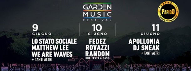 Garden Music Festival 2017 Garden Music Festival il 9 - 10 - 11 Giugno 2017 - Gressan (Aosta)Orari: dalle 10.00 alle 4.00Il festival musicale per tutti della durata di 3 giorni.10 PALCHI non stopA ogni giorno verrà dedicato un particolare stile musicale:9 GIUGNO - ROCK si esibiranno oltre 100 band rock provenienti da tutta Italia, offrendo un repertorio degli anni 60 – 70 – 80 con tributi italiani e internazionali nonché gruppi emergenti italiani. Guest: LO STATO SOCIALE MATTHEW LEEWE ARE WAVESCELEB CAR CRASHFLEMT10 GIUGNO - POP, HIP HOPtanti fra artisti e dj's che si esibiranno, con contest di rap freestyleGuest:FEDEZ ROVAZZI RANDOM UNA FESTA A CASOSILVIO SACCHI 11 GIUGNO - TECHNO, ELETTRONICAsarà dedicata alla musica elettronica e house, vedremo partecipare oltre 90 organizzazioni da tutta Italia con i migliori dj's del panorama musicale elettronico.Guest: APOLLONIA DJ SNEAK DETLEFDI CHIARA BROTHER'STOO LONG FLESHMOBSHAUN REEVESFRANESCO GIGLIOSaranno presenti ATTIVITA' SPORTIVE:CALCIO a 5 - CALCIO A 7 - RAFTING - DOWNHILL - TREKKINGTanti punti ristoro con svariate specialità, del luogo e nonTanti punti gadget e prodotti di artigiani italianiContest artistico di LIVE PAINTING------------------------------------------------» INGRESSO SOLO IN PREVENDITAPrevendite 20€» PUNTO PREVENDITE PAPIDO: Corso Lodi, 45 - Milano (MM Lodi)Lun-Ven dalle 10 alle 20◐◐ Iinfo su Appuntamento ✆ +39 02 89690457Orari Extra su Appuntamento ✆ +39 333 2434799--------------------------------------------------------------------➜ GARDEN MUSIC FESTIVAL► Les Iles - Gressan (Aosta)◐◐ Info & Biglietti ✆ +39 333 2434799