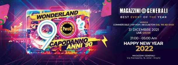 Capodanno Magazzini Generali ✘ Venerdi 31 Dicembre 2021 🎉CAPODANNO @ MAGAZZINI GENERALI 🧨📍 Via Pietrasanta, 16 - Milano🕕 dalle 23,00 alle 05,00 🕚----------------------------In occasione di CAPODANNO 2022 abbiamo il piacere di invitarvi all'Evento:WONDERLAND 90 ai MAGAZZINI GENERALI MILANO 💣L’appuntamento è a Capodanno ai Magazzini Generali con la One Night 🎵 Dance, Revival, Anni 90Una vera e propria ondata di Musica e Spettacolo, una festa ricca di animazione, dj, ballerini, personaggi fantastici degli anni 90, gadgets, effetti speciali e un super video show 🎆Tutte le hit pop, rock e dance mixate a raffica, preparatevi a ballare la musica che ha fatto la storia, i brani indimenticabili da cantare e i singoli che hanno scalato le classifiche di un decennio glorioso 💃🏽💃🏽Non vi resta che chiudere gli occhi, aprire il cuore e rivivere solo i vostri ricordi migliori! 🔥🔥» Suoni, Luci, Colori, Scenografie e tanto tanto Divertimento 👭Obbligo di mascherina e SUPER GREEN PASS per accedere 😷----------------------------↬ FORMULE DI INGRESSO solo con PAGAMENTO ANTICIPATO ✆ 3332434799☰ PREVENDITA BUFFET ☰(dalle 21,00 alle 05,00)60€ a PersonaCena a Buffet (fino alle 23,00)1 Drink + 1 FlûteDj Set fino alle 5,00☛ ACQUISTA ON LINE >>>☰ PREVENDITA INGRESSO ☰(dalle 23,00 alle 05,00)40€ a Persona1 Drink + 1 FlûteDj Set fino alle 5,00☛ ACQUISTA ON LINE >>>☰ PREVENDITA TAVOLI ☰(dalle 21,00 alle 05,00)Tavolo Pista 200€ (1 Bottiglia)Tavolo Prive 300€ (1 Bottiglia)Tavolo Balconata 300€ (1 Bottiglia)Per accedere bisogna esser muniti di Prevendita Buffet o Ingresso☛ ACQUISTA ON LINE >>>----------------------------☰ PROGRAMMA DELLA SERATA ☰ore 21,00 - Ingresso Buffetore 23,00 - Ingresso Serataore 23,59 - Countdownore 00,00 - Brindisi del 2022ore 00,01 - Wonderland 90 – Il Capodanno d’Italiaore 05,00 - Closing Party☛ PREVENDITA OBBLIGATORIA ✆ 3332434799----------------------------Vietato l'ingresso ai Minorenni⚠️ La Direzione si riserva la selezione all'ingresso☛ PRENOTAZIONE OBBLIGATORIA☎ Info in Direct ✆ 3332434799