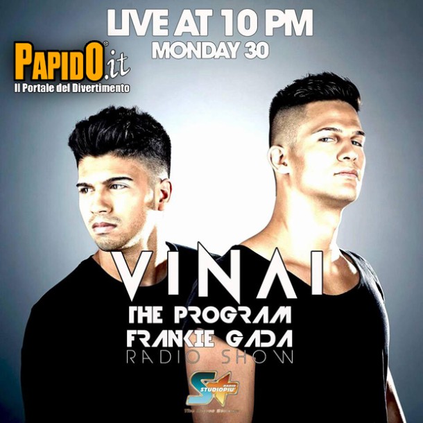 Su The Program Intervista ai VINAI Lunedi 30 Novembre su Radio Studio Piu dalle ore 22.00 a 'The Program' il programma radiofonico condotto da Frankie Gada da non perdere l'esclusiva intervista ai Vinai... Ogni settimana il programma innovativo The Program ci propone sempre tante novità musicali, le uscite esclusive e tante interviste....tanto per citarne alcuni, nel corso delle puntate scorse Frankie ha intervistato le Nervo, Arno Cost, Delayers i The Cube Guys!!Sintonizzatevi allora su Radio Sudio Piu, Lunedi 30 Novembre dalle ore 22.00 se invece siete in giro o da Pc potete ascoltarlo in Streaming In collaborazione con Alberto Gobbi Events restiamo in attesa di ascoltare l'intervista! By Paolo PapidO