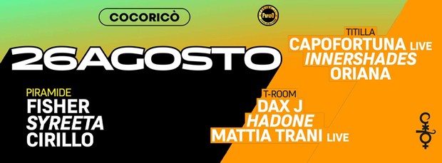 Sabato 26 Agosto 2023 Cocoricò Riccione dalle ore 23.30 alle ore 05.00