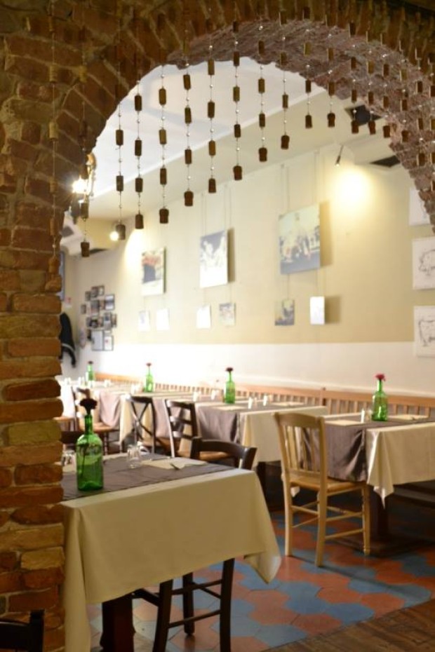 Piccola Osteria a conduzione familiare nel centro di San Giovanni in Marignano, paese inserito nei borghi più belli d’Italia. Viene offerta una cucina semplice e dai sapori genuini grazie all'utilizzo di materie prime di qualità, in base alla loro stagione. Ideale per gli amanti della pasta fatta in casa e della carne, ma potrete trovare anche diverse proposte per vegetariani. Il tutto è accompagnato da una selezionata carta di vini nazionali e di birre artigianali che si possono anche acquistare da asporto. il ristorante è aperto a pranzo, cena, ma anche per un buon calice di vino nel dopo-cena. Il locale è ricavato dal vecchio palazzo abitato in passato dal conte Spina. Appena entrati la vostra attenzione sarà attirata dal colorato pavimento e vi salterà agli occhi un bellissimo arco in mattoni che separa due salette. La prima, all’ingresso, si sviluppa davanti al massiccio bancone da bar ispirato ai tapas bar spagnoli, la seconda in fondo al locale, ha travi in legno a vista e una piccola cantina in mattoni. Nel periodo invernale l'osteria può ospitare circa 35 persone e questo lo rende molto versatile in quanto risulta un locale intimo per le coppie o famiglie, ma spesso capita che comitive più numerose lo riservino completamente per festeggiare compleanni, anniversari, cresime,comunioni o pranzi aziendali. Nel periodo estivo il centro storico diventa pedonale ed è possibile cenare all'esterno grazie ad altri 30 coperti posizionati proprio nella via antistante l'osteria.