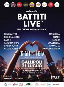 Il 21 Luglio 2019 nel porto di Gallipoli ci sarà la 17° edizione di Battiti Live.Concerto gratuito con vari artisti di fama nazionale.