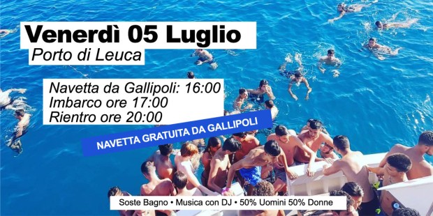 Il Boat Party di Venerdì 5 Luglio si svolgerà a LEUCA, ci sarà la navetta gratuita per tutti i partecipanti da Gallipoli.